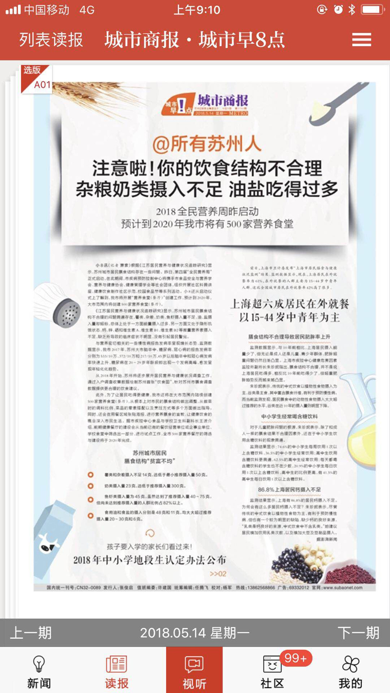江苏省苏州市全民营养周——媒体宣传报道